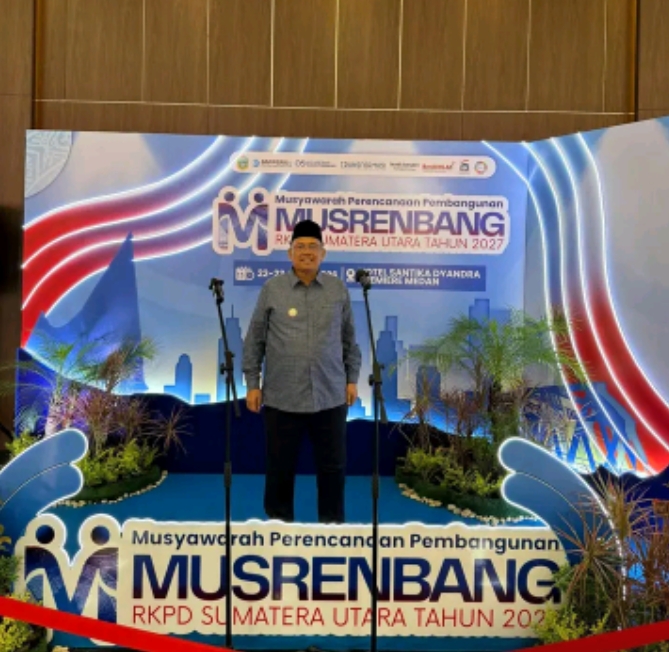 MEDAN — Mediamutiara.Com Komitmen memperkuat sinergi pembangunan lintas wilayah kembali ditegaskan Bupati Dairi, Ir. Vickner Sinaga, saat menghadiri Musyawarah Perencanaan Pembangunan (Musrenbang) Rencana Kerja Pemerintah Daerah (RKPD) Provinsi Sumatera Utara Tahun 2027. Kegiatan tersebut berlangsung di Hotel Santika Premiere Dyandra, Medan, Rabu (22/4/2026).