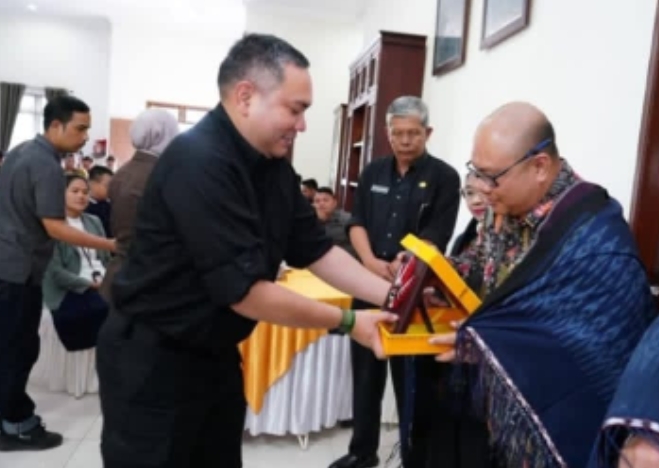 Pakpak Bharat — mediamutiara.com Bupati Pakpak Bharat, Franc Bernhard Tumanggor menghadiri Temu Pisah Kepala Kejaksaan Negeri Dairi.