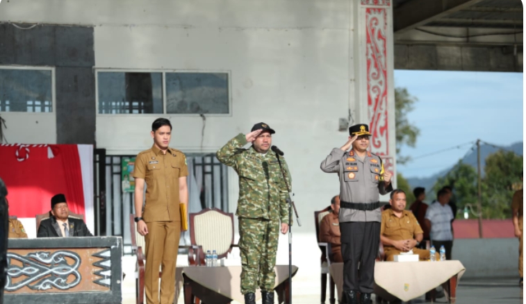 Bupati Pakpak Bharat memimpin Apel Gabungan Pemerintah Kabupaten Pakpak Bharat, TNI/Polri pasca libur lebaran di Lapangan Napa Sengkut, Salak (08/04/2025). bersama Kapolres Pakpak Bharat, AKBP Pebriandi HAloho, SIK, SH, M.Si, Franc Bernhard Tumanggor memeriksa barisan, serta memeriksa kehadiran seluruh aparaturnya.