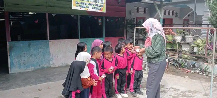 Bunturaja –media mutiara.com Dinas Kependudukan dan Pencatatan Sipil (Dukcapil) Kabupaten Dairi melalui Petugas Dukcapil TPDK Kecamatan Siempat Nempu Pion Tarigan membagikan 12 Kartu Identitas Anak (KIA) milik Anak – Anak Pendidikan Anak Usia Dini (PAUD) KB Bersama Desa Bunturaja, Kecamatan Siempat Nempu, Jumat (09/08/2024).