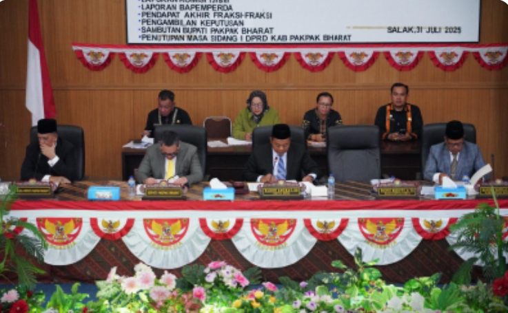 Dewan Perwakilan Rakyat Daerah (DPRD) Pakpak Bharat mengesahkan tiga Rancangan Peraturan Daerah menjadi tiga Peraturan Daerah Pakpak Bharat dalam Sidang Paripurna DPRD Pakpak Bharat (31/07/2025). Dalam Sidang Paripurna yang dipimpin oleh Ketua DPRD Pakpak Bharat, Elson Angkat, SS, seluruh Fraksi di DPRD bulat menerima dan mengesahkan ketiga Ranperda dimaksud.