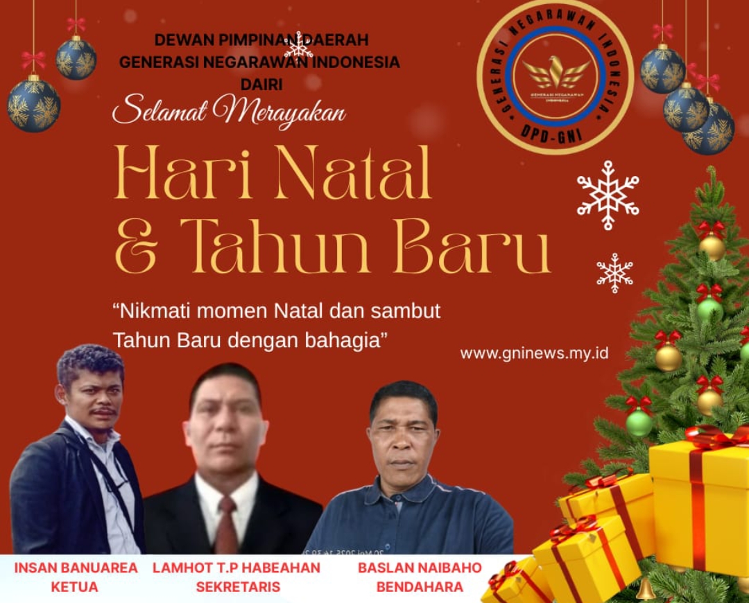 DAIRI – Mediamutiara.com Dewan Pimpinan Daerah (DPD) Gerakan Nasional Indonesia (GNI) Kabupaten Dairi menyampaikan ucapan Selamat Hari Natal 2025 dan Tahun Baru 2026 kepada seluruh masyarakat, khususnya umat Kristiani di Dairi dan sekitarnya.