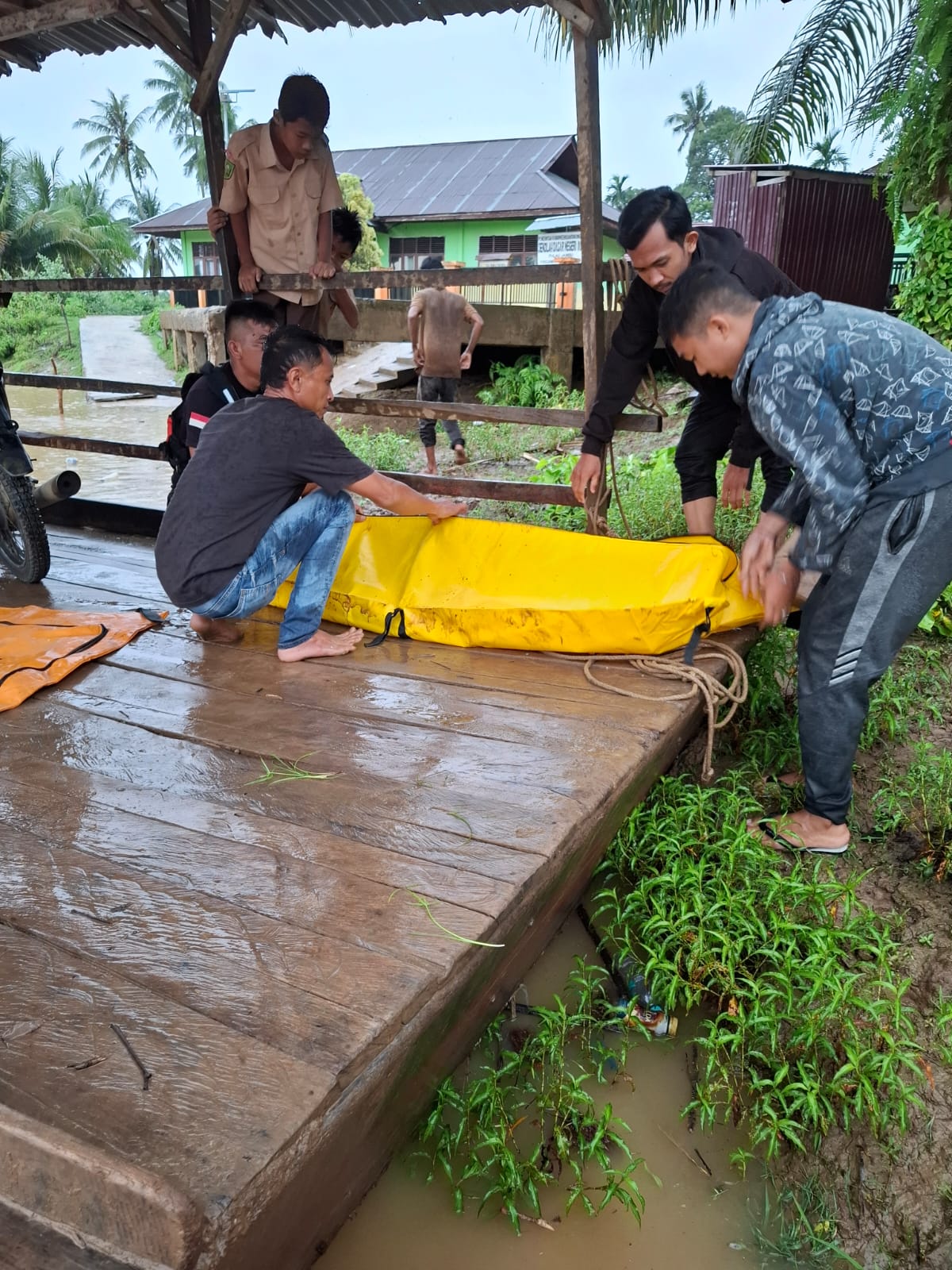 Jenazah kemudian dibawa ke pos Basarnas yang berada di tepian penyeberangan kompang Kelurahan Pasar Cerenti. Setelah dibungkus menggunakan kantong jenazah, korban langsung dievakuasi ke rumah duka.