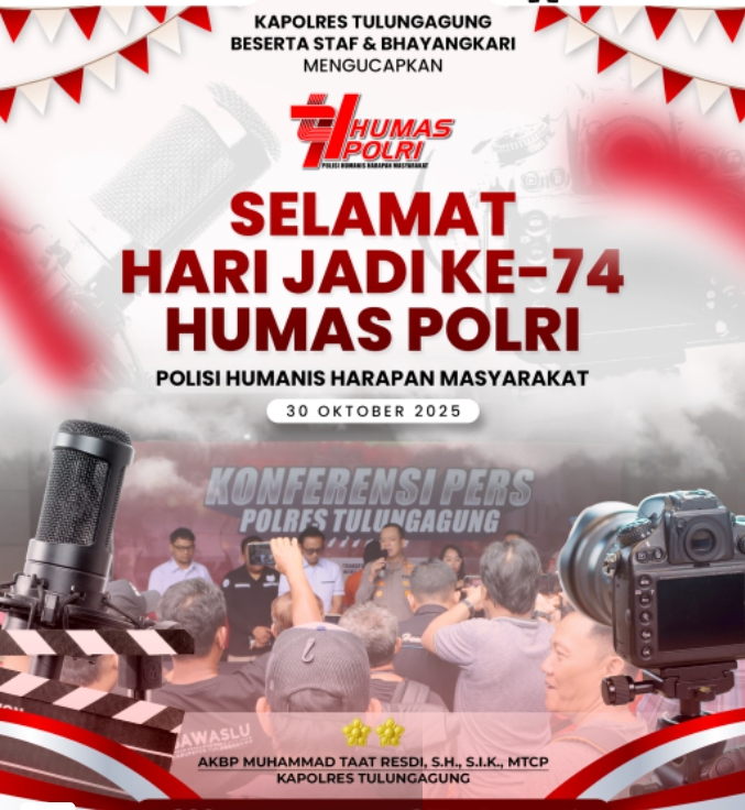 TULUNG AGUNG – Mediamutiara. com Dalam rangka memperingati Hari Ulang Tahun (HUT) Humas Polri ke-74, Kepala Seksi Hubungan Masyarakat (Kasi Humas) Polres Tulungagung menyampaikan apresiasi setinggi-tingginya kepada awak media.