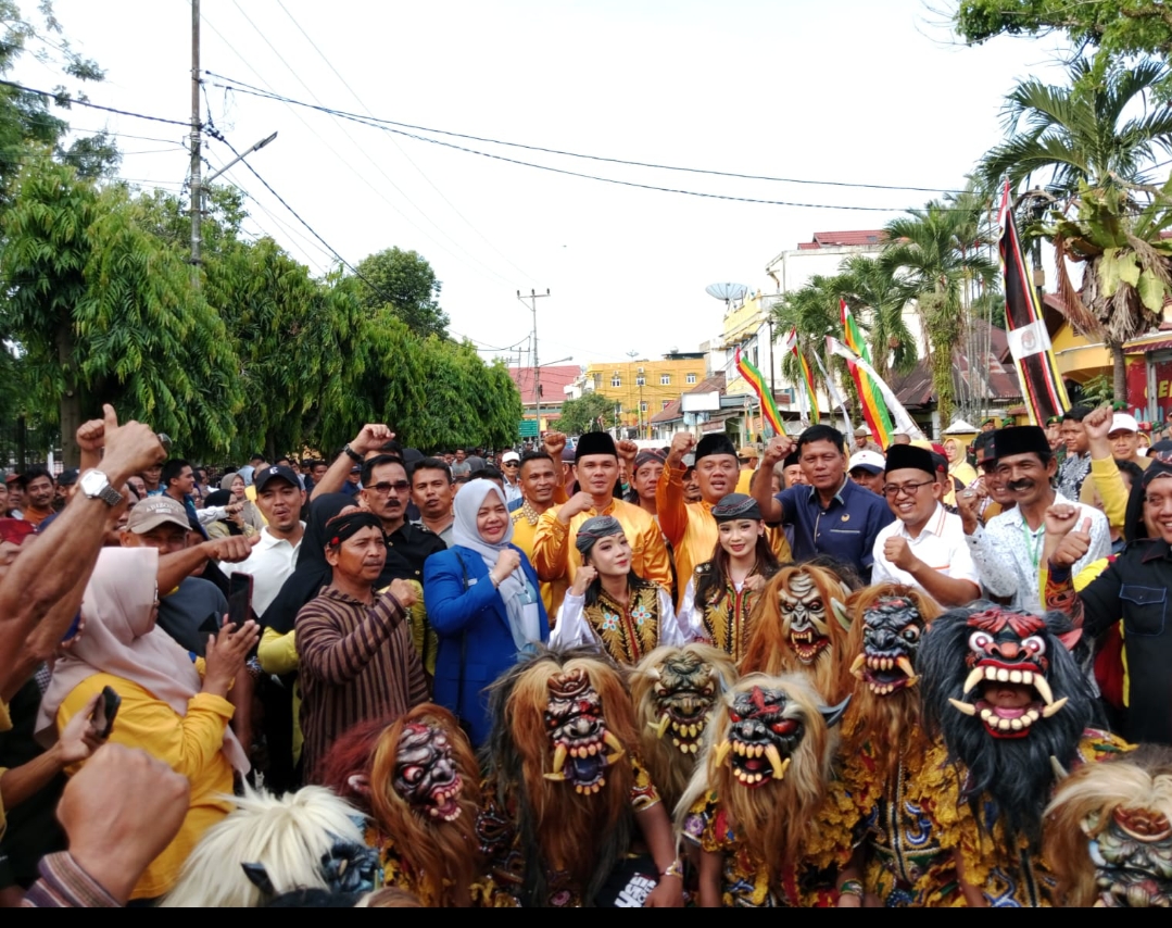 TELUKKUANTAN – Mediamutiara com Massa pendukung bakal calon Bupati Adam dan bakal calon wakil Bupati H Sutoyo paling ramai saat mengantar idola mereka mendaftar ke kantor Komisi Pemilihan Umum (KPU) kabupaten Kuantan Singingi (Kuansing), Kamis (29/8) siang.