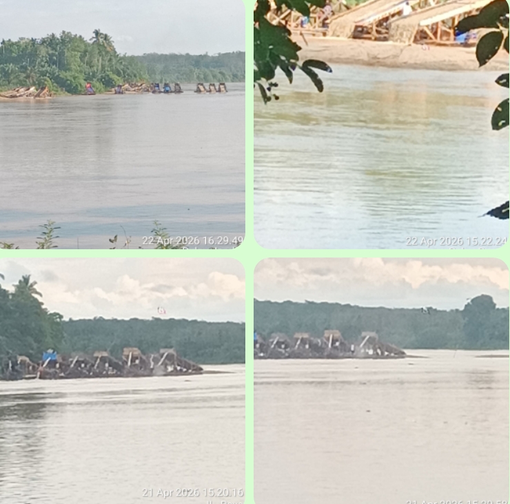 Berdasarkan pantauan lapangan pada Rabu (22/04/2026), aktivitas ilegal ini terkonsentrasi di sejumlah titik krusial, mulai dari Desa Pulau Busuk (Kecamatan Inuman) hingga Desa Pulau Jambu dan Desa Pulau Bayur (Kecamatan Cerenti). Ratusan rakit dompeng terlihat beroperasi bebas seolah kebal hukum, mengubah warna air sungai menjadi keruh pekat dan memicu kerusakan tebing sungai.
