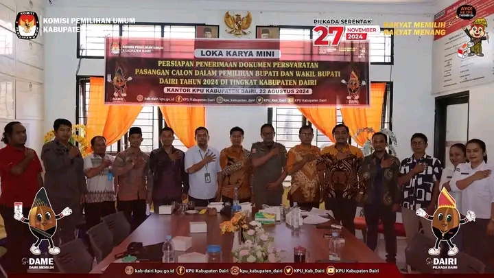 DAIRI-MUTIARA.COM Kamis, 22 Agustus 2024 KPU Kabupaten Dairi melaksanakan Loka Karya Mini Persiapan Penerimaan Dokumen Persyaratan Pasangan Calon dalam Pemilihan Bupati dan Wakil Bupati Dairi Tahun 2024 di Tingkat Kabupaten Dairi di Kantor KPU Kabupaten Dairi.