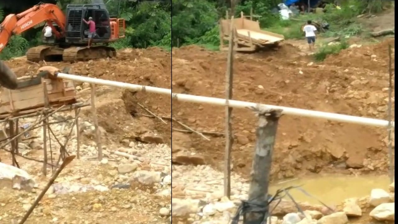Menurut S, dua unit alat berat jenis excavator terlihat memporak-porandakan kawasan hutan lindung yang berlokasi tidak jauh dari tempat wisata Air Terjun Batang Koban.