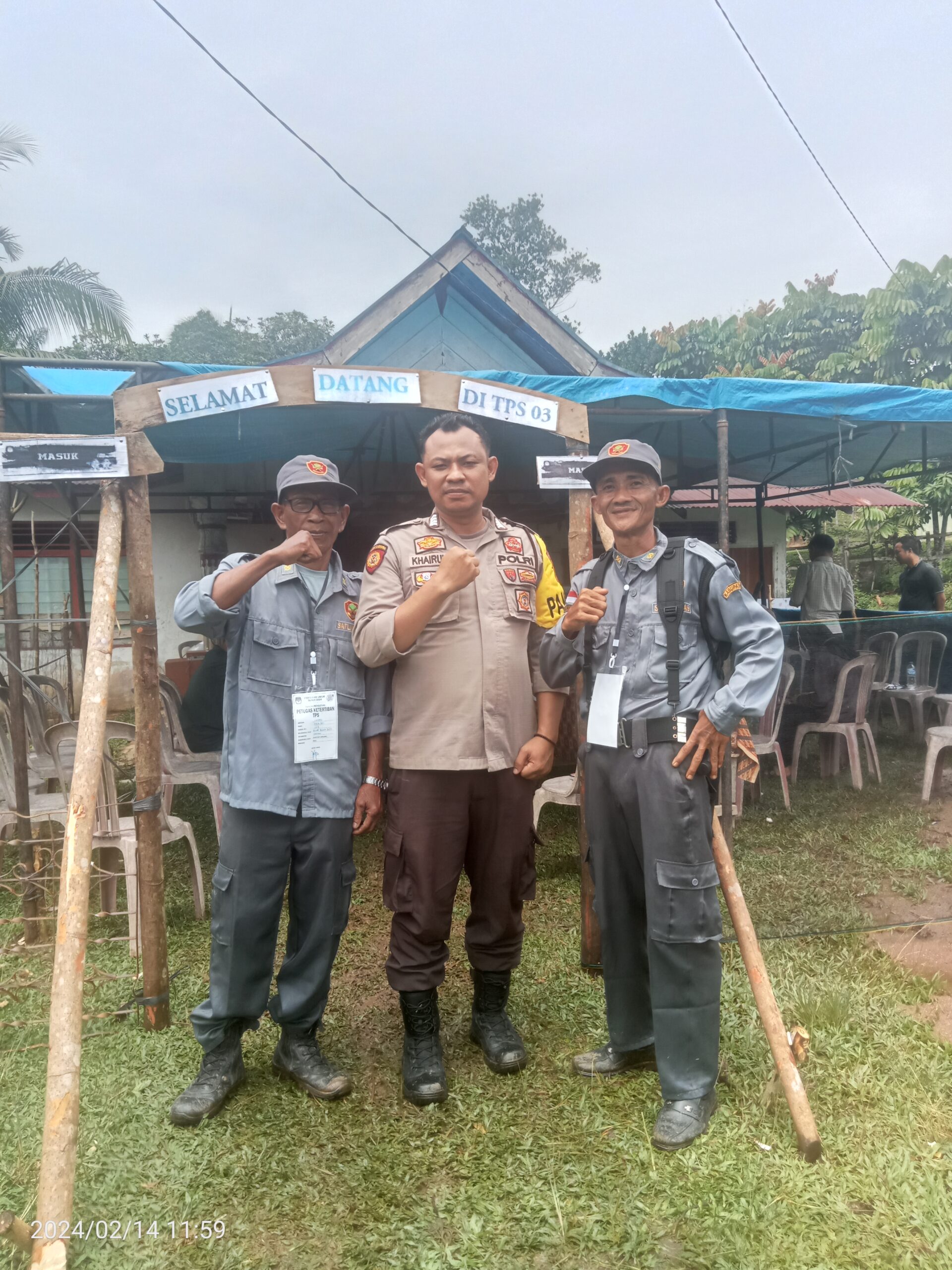 Kuansing – MediaMutiara – Untuk menunjang kinerja linmas desa pulau busuk jaya untuk penjagaan TPS, Bripka Khairul polisi PAM TPS Polres Kuansing Polda Riau memberikan sepatu PDL 1 A kepada ketua linmas desa pulau busuk jaya saat bergotong royong di TPS 003, selasa (13/02/2024)