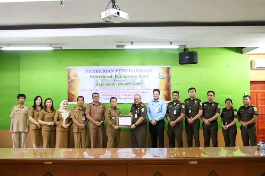 Penghargaan ini merupakan wujud nyata pengakuan Pemkab Dairi atas kerjasama dengan Kejaksaan Negeri Dairi selama ini.