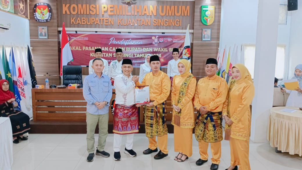 Kuansing (MediaMutiara) Paslon AYO (Adam – Sutoyo) Menjadi pasangan terakhir yang mendaftar di KPU kabupaten kuantan Singingi, Kamis, 29/08/2024.