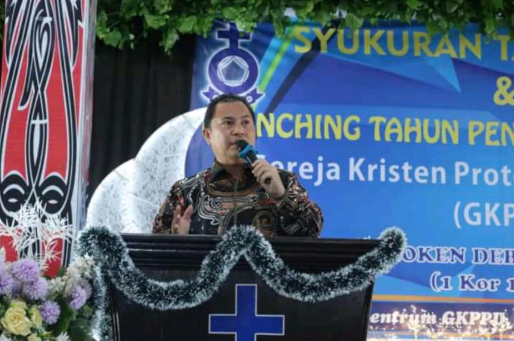 Dairi Media Mutiara.Com Penjabat (Pj) Bupati Dairi Surung Charles L. Bantjin menghadiri Acara Syukuran Tahun Baru dan Launching Tahun Penata Layanan Gereja, Kamis (09/01/2025) di Komplek Sentrum Kantor Pusat GKPPD.