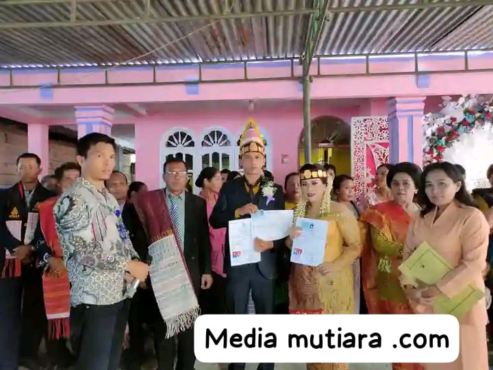 Jambur-Media Mutiara.Com Dinas Kependudukan dan Pencatatan Sipil (Dukcapil) Kabupaten Dairi melaksanakan penyerahan akta pernikahan kepada pengantin baru Soko Sugianto Simamora dengan Melda Hotnauli Manik di Dusun Jambu, Desa Jambur Indonesia Kecamatan Siempat Nempu Hilir, Jumat (06/0).