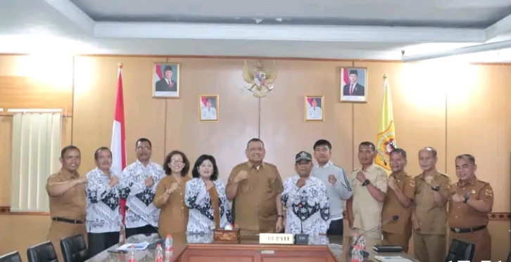 DAIRI — Mediamutiara.Com Pertemuan antara Bupati Vickner Sinaga dengan Persatuan Guru Republik Indonesia (PGRI) Cabang Dairi berlangsung hangat dan penuh makna, menandai langkah awal menuju rencana pelaksanaan konferensi luar biasa menjelang berakhirnya masa kepemimpinan pengurus lama yang dipimpin oleh Jolenta Haloho telah berakhir sejak 2024 lalu. Pertemuan yang digelar di ruang rapat Bupati, Selasa (14/4/2026) ini juga dihadiri oleh Asisten Pemerintahan, Agel Siregar, Staf ahli Bupati, Ruspal Simarmata, dan Kadis Pendidikan Jaspin Sihombing serta beberapa pengurus PGRI kabupaten dan kecamatan untuk membahas kepengurusan baru 2025-2030.