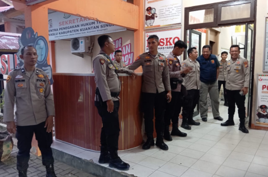 TELUKKUANTAN,–Mediamutiara.com Polres Kuantan Singingi terus meningkatkan pengamanan preventif di Kantor Badan Pengawas Pemilu (Bawaslu) Kabupaten Kuansing dalam rangka mendukung pelaksanaan Operasi Mantap Praja Lancang Kuning 2024. Pada Jumat, (13/12/2024), pukul 07.50 WIB, dilaksanakan Apel Pengamanan di lokasi tersebut sebagai bentuk kesiapsiagaan personel dalam menjaga situasi aman dan kondusif selama tahapan Pilkada Serentak 2024 berlangsung. Apel pengamanan dipimpin oleh Katim Pam Ipda Erfi Jonsons dengan 16 personel pengamanan kantor Bawaslu Kuansing.