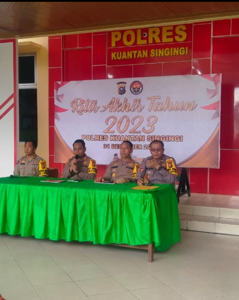 TELUK KUANTAN,Media mutiara.com Kapolres Kuansing AKBP Pangucap Priyo Soegito, S.I.K, M.H, Pimpin Kegiatan Press Release Akhir Tahun 2023 di Polres Kuansing, Minggu (31/12/2023) Pukul 09.00 WIB.