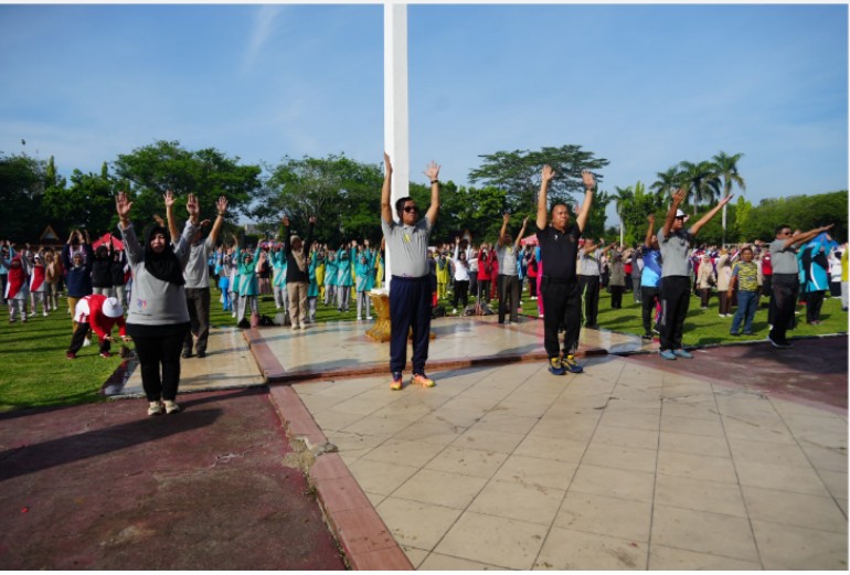 Bupati Kuantan Singingi Drs H Suhardiman Amby Ak MM hadiri dan buka kegiatan tersebut. Bupati Suhardiman mengikuti senam massal bersama yang diikuti Forkompinda, seluruh OPD, Penasehat Ahli Bupati Aherson, S.Sos, M.Si, dan ribuan guru se kabupaten Kuansing.