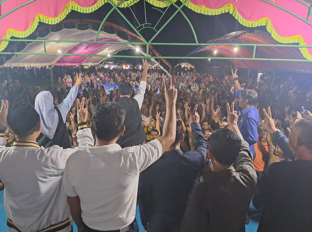 KUANSING,- Mediamutiara.com Peluang menang makin besar, warga pun tak segan-segan datang memadati Lapangan Sepakbola Simpang Raya Singingi Hilir dalam acara kampanye dan pengukuhan Tim Pemenangan Adam-Sutoyo (AYO) di Desa Simpang Raya dan Desa Sungai Buluh Singingi Hilir, Ahad (6/10/2024).