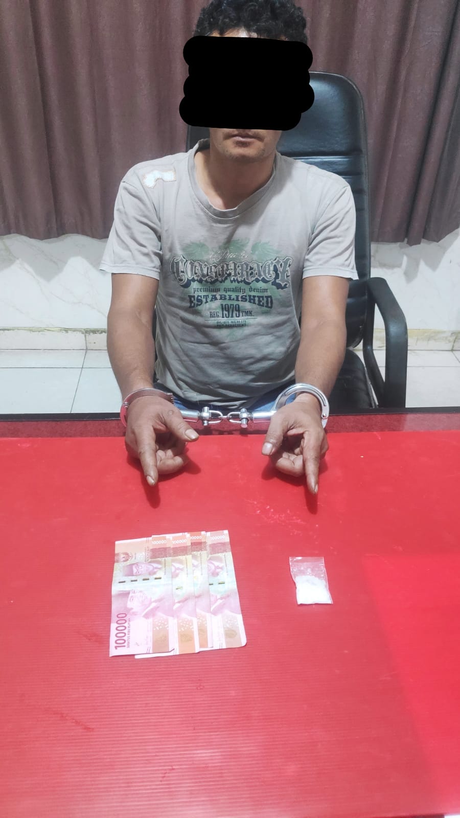 Barang Bukti yang Disita dari R (47) yakni Satu paket plastik klip yang diduga berisi narkotika jenis shabu dan Uang hasil penjualan sebesar Rp. 400.000. Hasil interogasi mengungkap bahwa R mendapatkan narkotika jenis shabu dari seseorang berinisial W dengan harga Rp. 3.500.000. R (47) juga dikenakan Pasal 114 ayat (1) Jo Pasal 112 ayat (1) UU Nomor 35 Tahun 2009 tentang Narkotika dan dari Introgasi sdra R menerangkan benar ianya Residivis kasus Narkoba tahun 2017. Hasil Tes Urine Kedua tersangka, AP (25) dan R (47), dinyatakan positif mengonsumsi amphetamine berdasarkan hasil tes urine.
