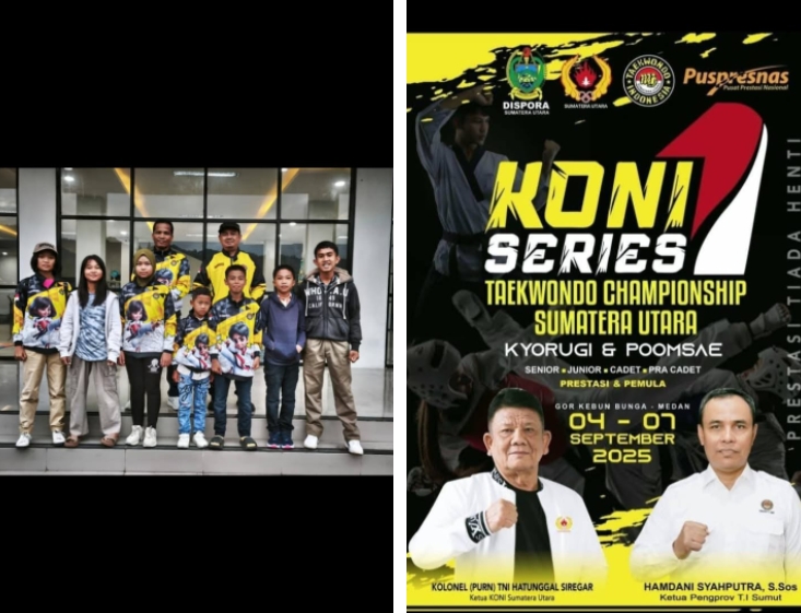 Tim Taekwondo Pakpak Bharat berangkat menuju kota Medan dan timdipimpin pelatih Taekwondo Pakpak Bharat James Samosir dan m akan berlaga di “KONI Series Taekwondo Championship Sumatera Utara” yang akan berlangsung di GOR Kebun Bunga, Medan mulai 04 – 07/09/2025.