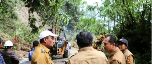 Silalahi-Mediamutiara.Com Wakil Bupati Kabupaten Dairi Wahyu Daniel Sagala di dampingi Sekretaris Daerah Kabupaten Dairi Surung Charles Bantjin meninjau lokasi jalan menuju Kecamatan Silahisabungan yang tertutup bencana tanah longsor, Selasa (25/2/2025)